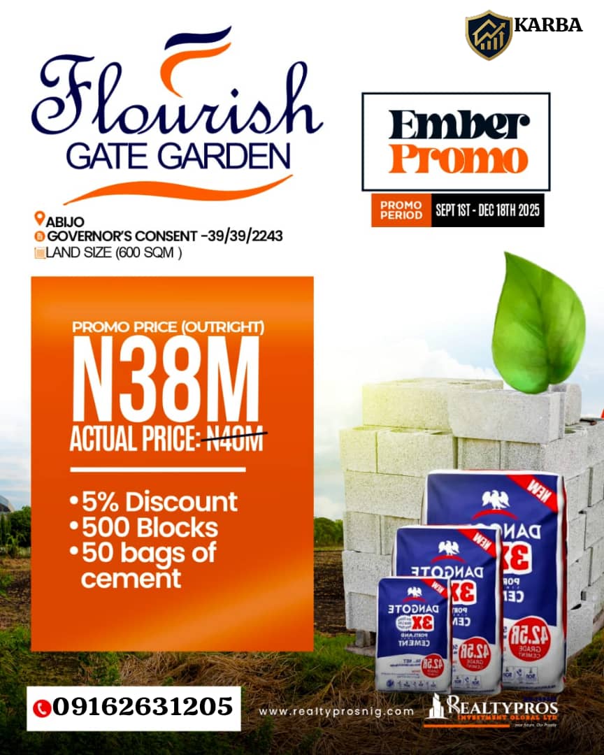 Secure your property this week and get 500 Blocks and 50 Bags of Cement. Plus up to ₦2m savings (Ends 18/12/2025).